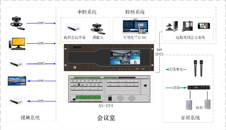 中控、音频、视频一体化可视化应用,部署方便、使用灵活、维护简单。